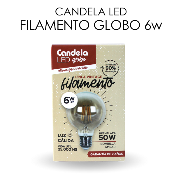 Lámpara de filamento led globo 6w e27 luz cálida (*)