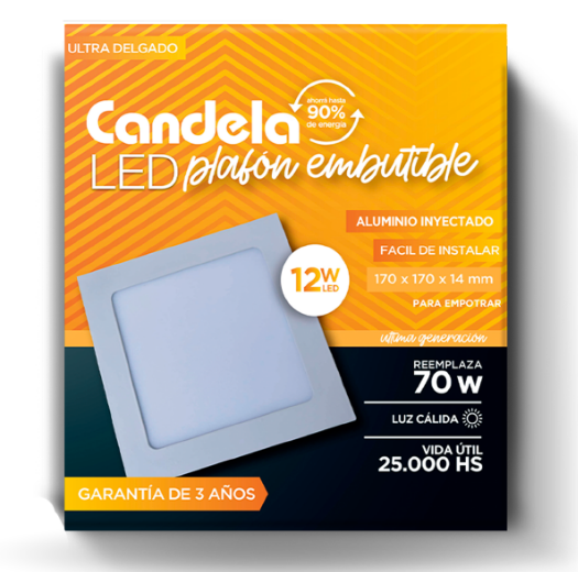 Plafón led cuadrado 12w de embutir luz cálida