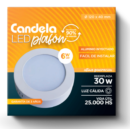 Plafón led redondo 6w de aplicar luz cálida