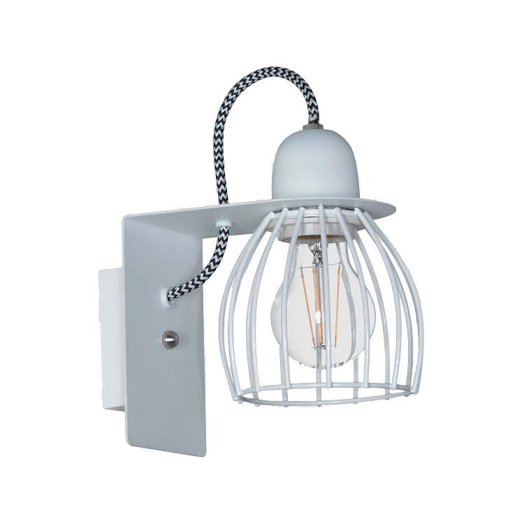 Aplique "jaula" 10*18*18. 1 luz e-27 con cable textil. Blanco