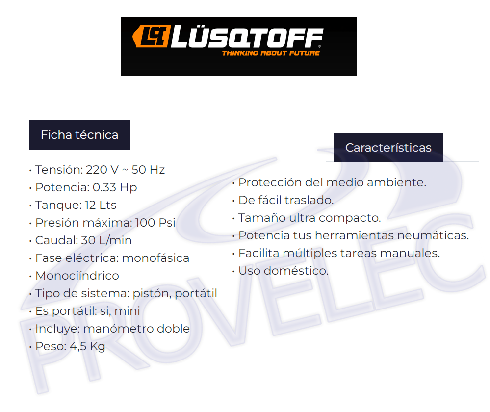 Compresor aire mando directo 1/3hp 12 litros, sin aceite (*)
