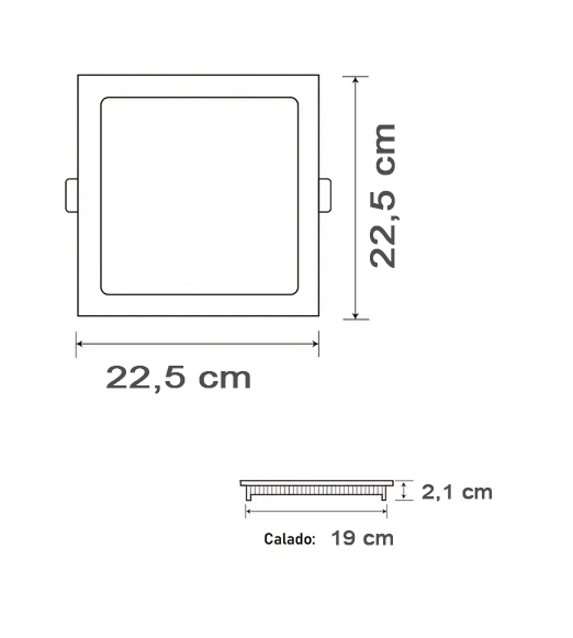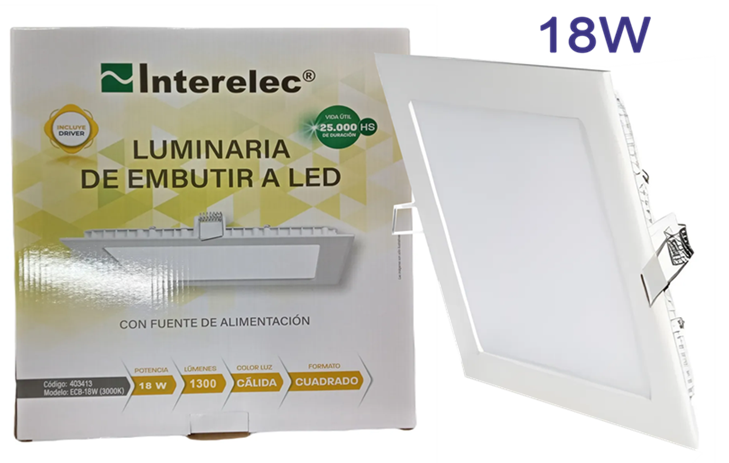 Plafón led 18w cuadrado de embutir. Luz cálida