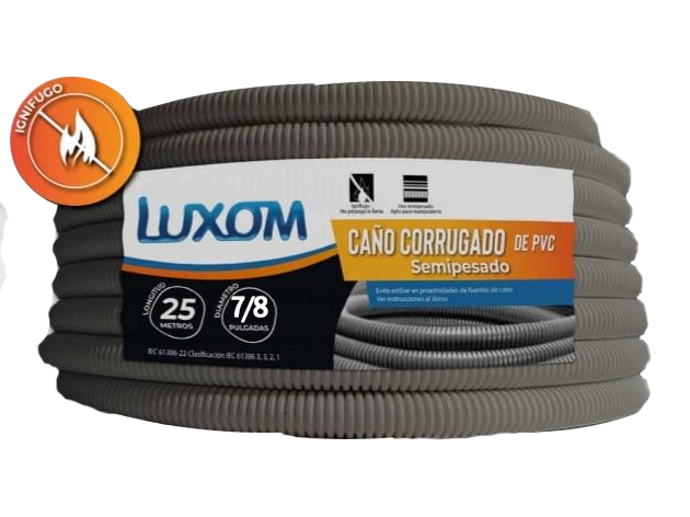 Caño corrugado semipesado gris 7/8" por 25mts
