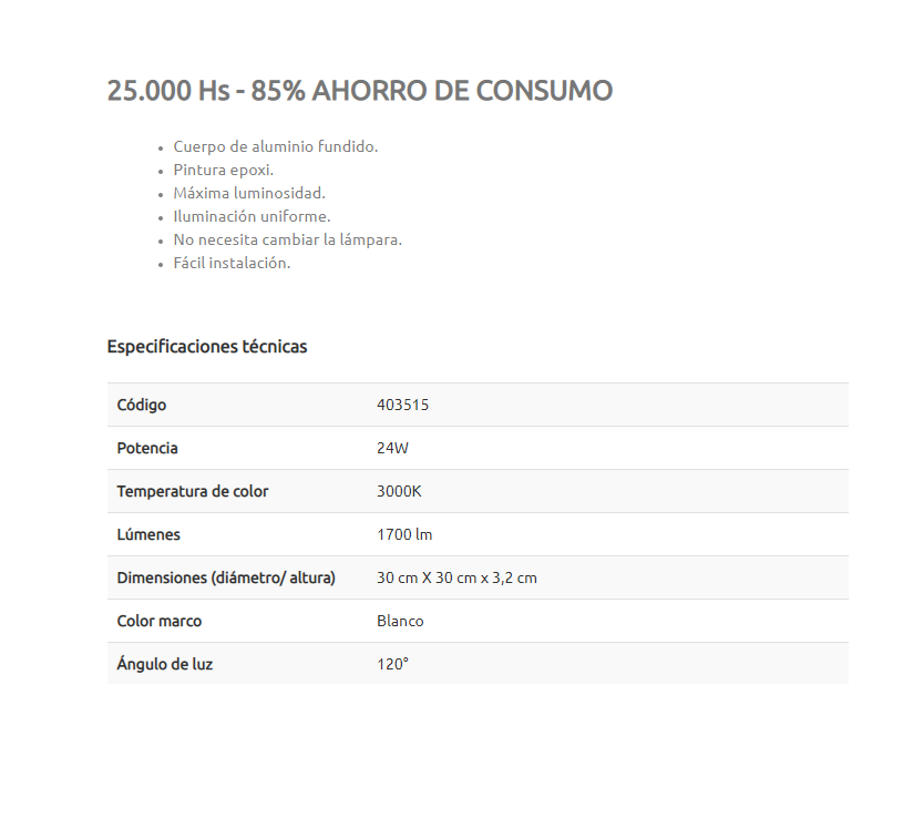 Pafón led cuadrado 24w de aplicar. Luz cálida