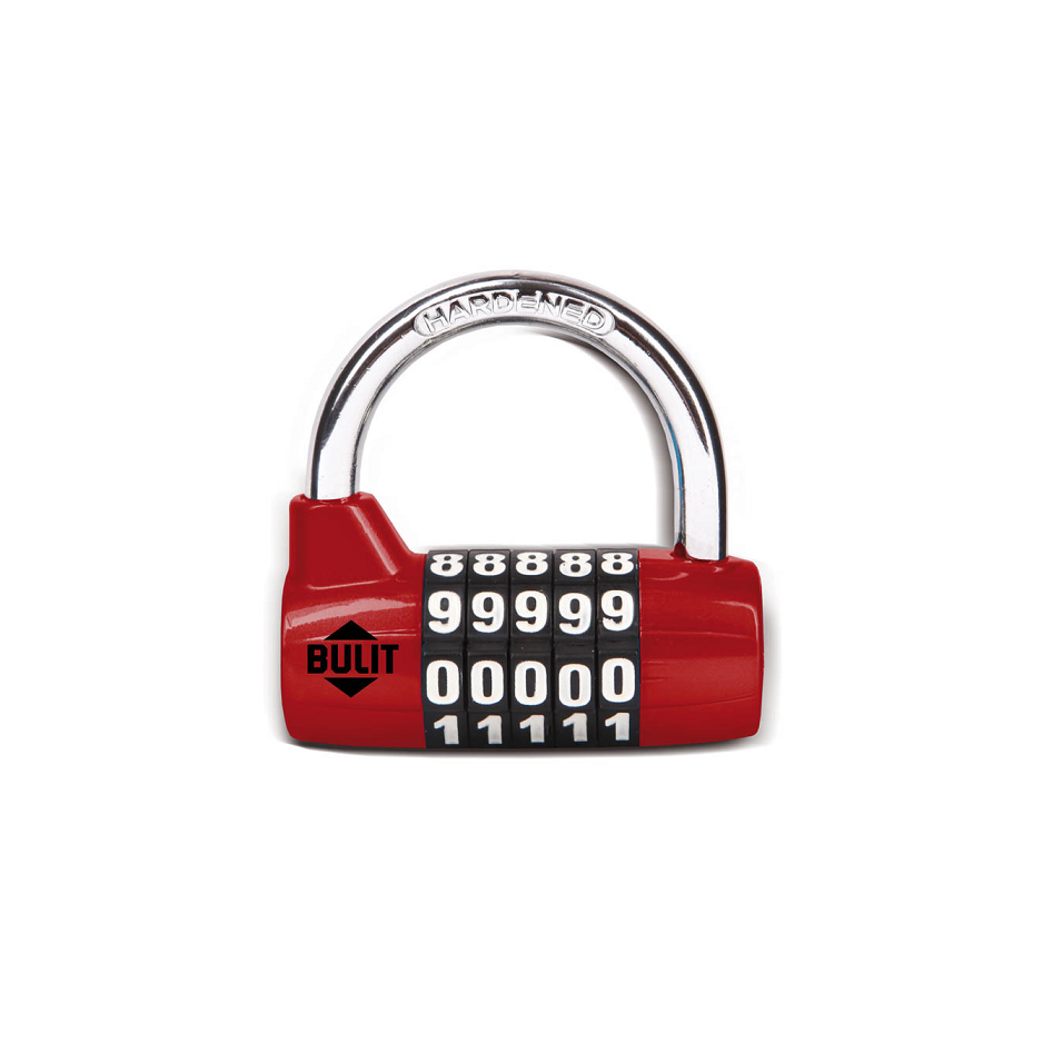Candado alta seguridad combinacion 5 cifras, 65mm color rojo
