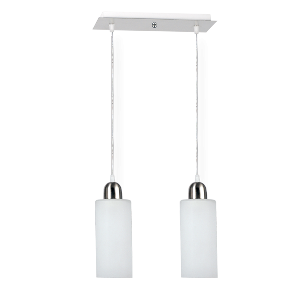 Colgante de acero 2 luces con tulipa cono/cilindro