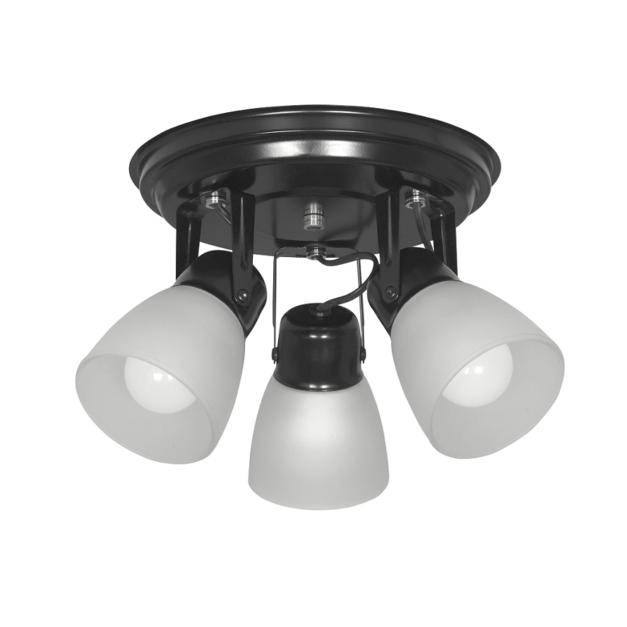 Spot plato con tulipa vidrio "alba" 3 luces. Negro
