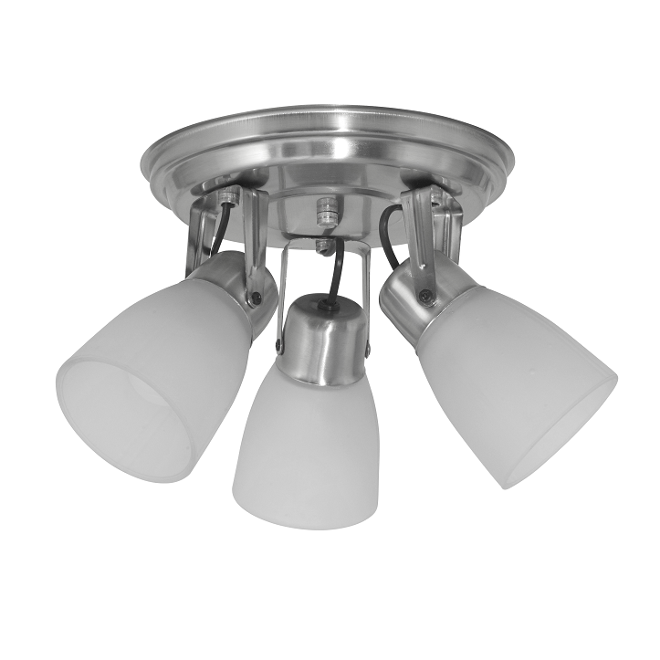 Spot plato con tulipa vidrio "garra" 3 luces. Plateado