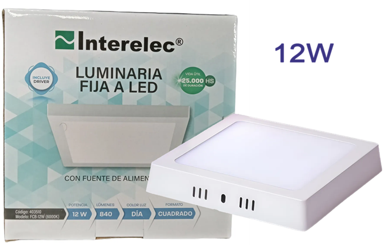 plafón led 12w cuadrado de aplicar. Luz fría