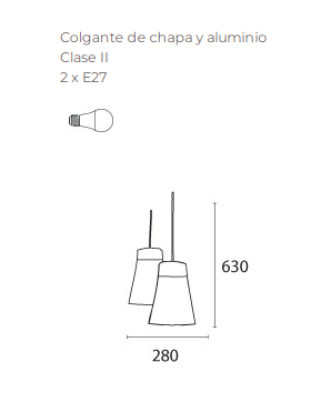 Lámpara colgante con detalle en alumunio 2 luces negro