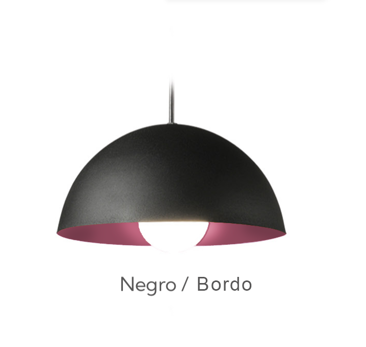 Lámpara colgante media esfera 1 luz Ø40cm. Color: Negro/Bordó