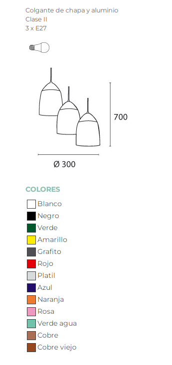 Lámpara colgante 3 luces con detalle en aluminio pulido Ø15cm. Roja