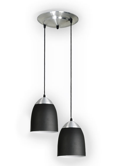 Lámpara colgante de 2 luces campana con detalle de aluminio Ø15cm. Negra