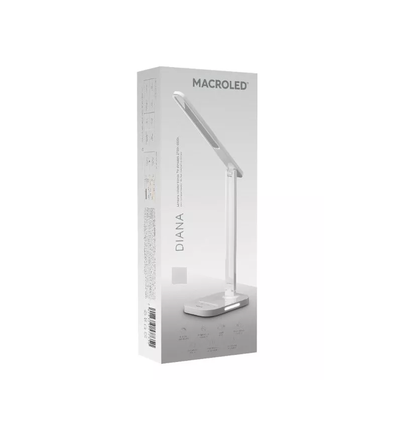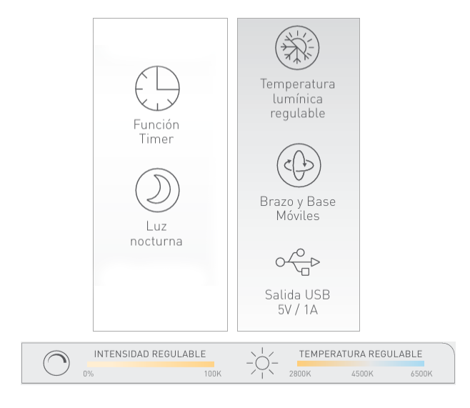 Lámpara velador de led 7w con salida usb, Intensidad y temperatura regulable. Blanco