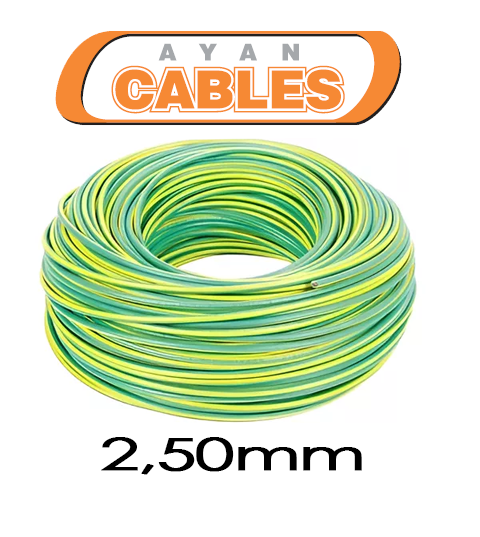 Cable unipolar 2.50mm*100mts, verde/amarllo