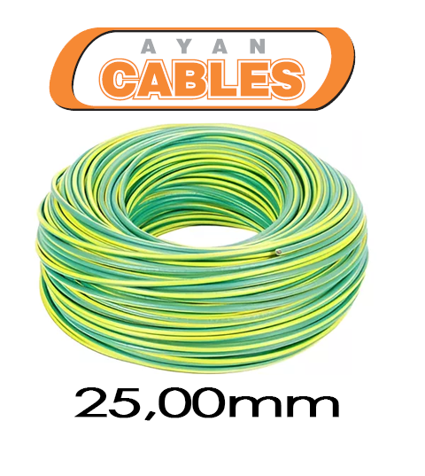Cable unipolar 25.00mm*100mts, verde/amarillo