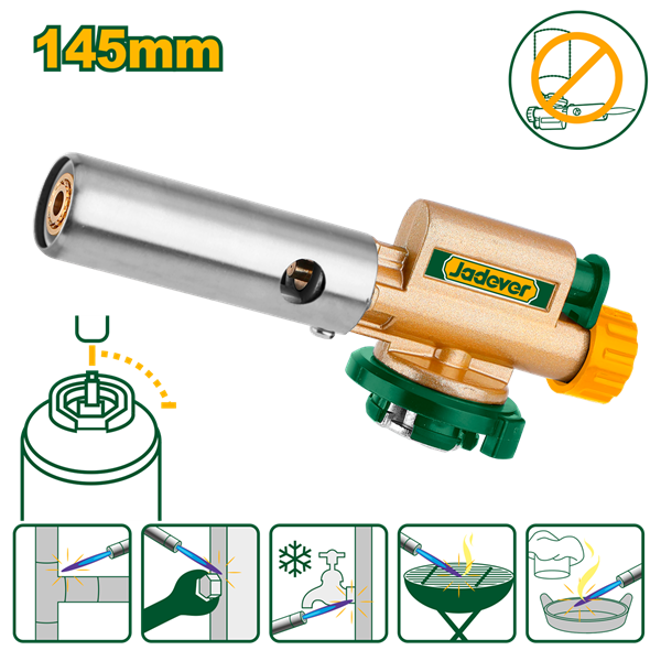 Soplete de gas. Conexión: tipo bayoneta. Temperatura de la llama: 1300°