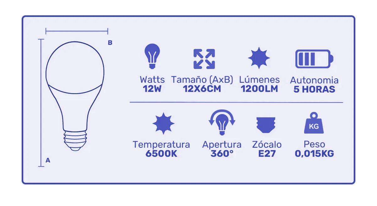 Lámpara led autonoma A60 12w. Luz fria e-27 (*)