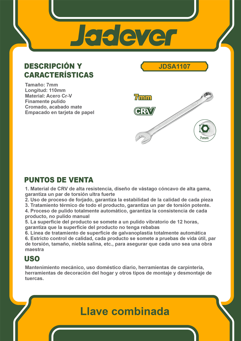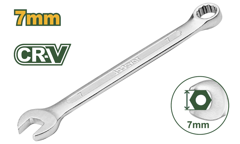 Llave combinada 7mm. Longitud: 11cm. Material: acero cr-v. Acabado mate