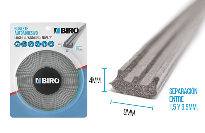 burlete autoadhesivo perfil "E" 5mtsx9mmx4mm. Color gris