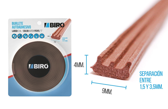 burlete autoadhesivo perfil "E" 5mtsx9mmx4mm. Color marrón