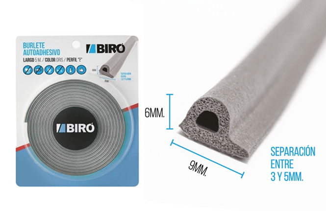 burlete autoadhivo perfil "P" 5mtsx9mmx6mm. Color gris