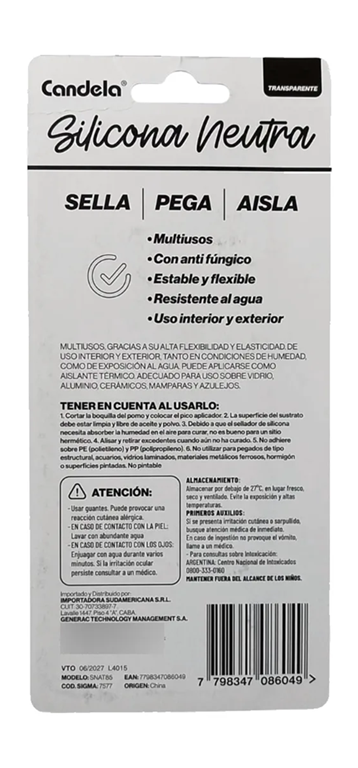 Sellador silicona neutra anti hongo 85gr. Transparente