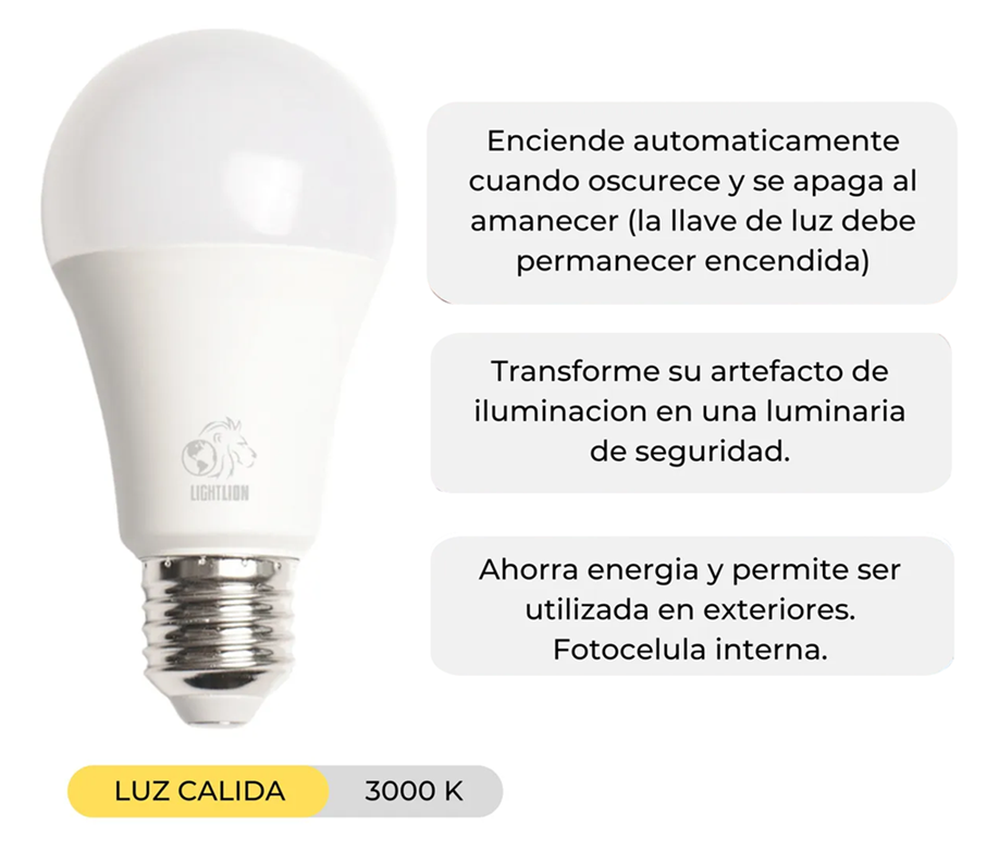 Lampara led A60 15w con fotocontrol. Luz cálida (*)