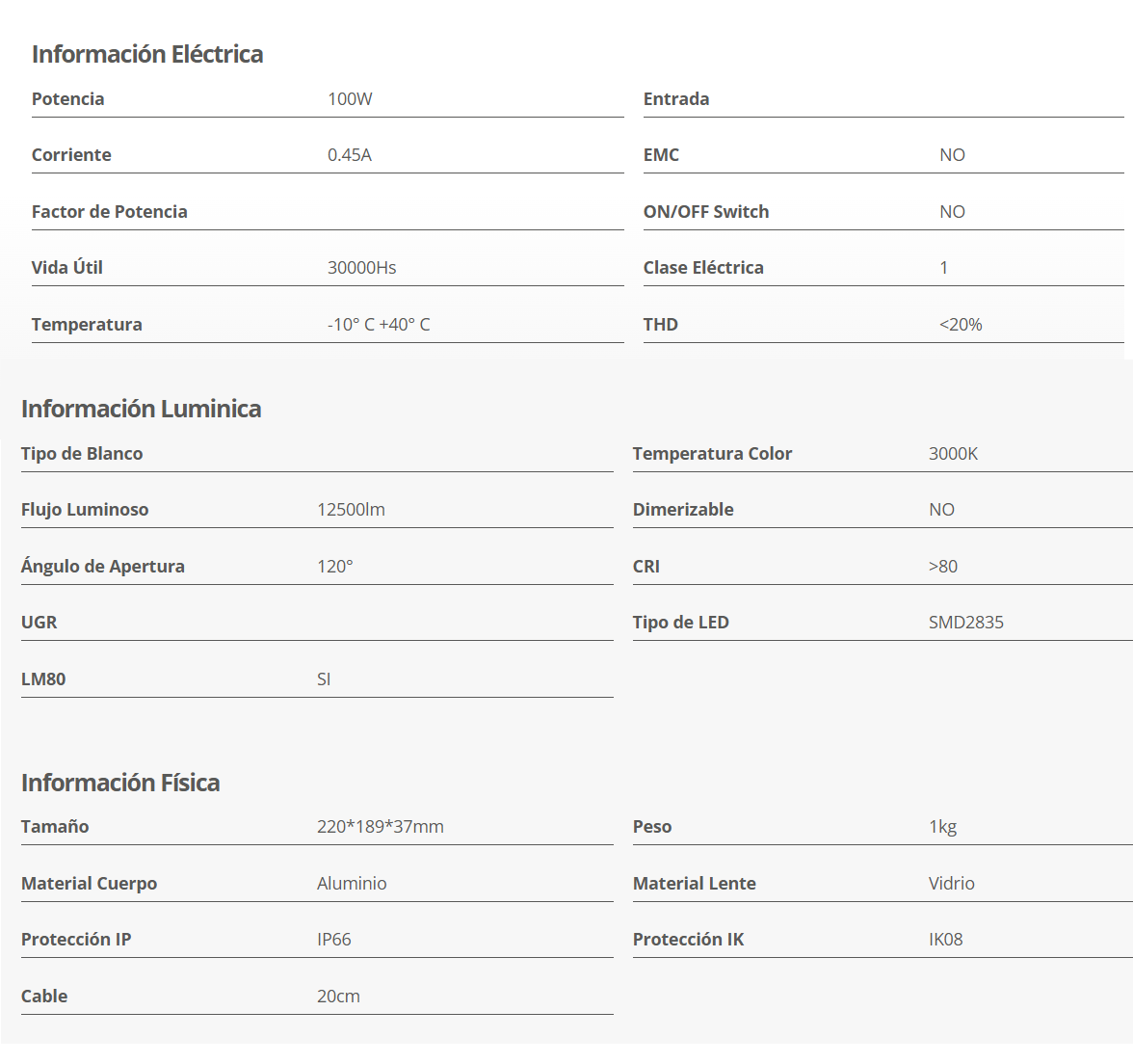 Proyector exterior led 100w. Nuevo Modelo. Luz cálida