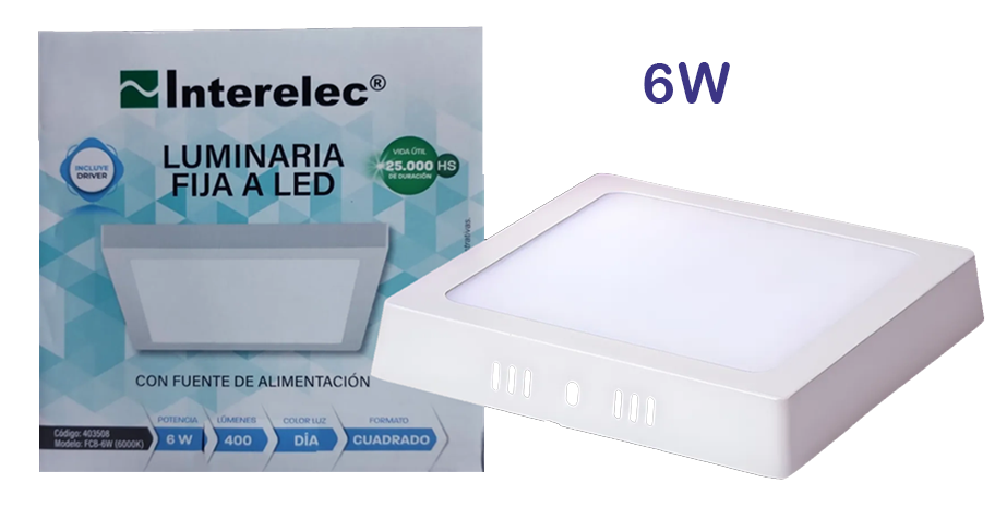 Plafón Led 6w Cuadrado De Aplicar. Luz Fría