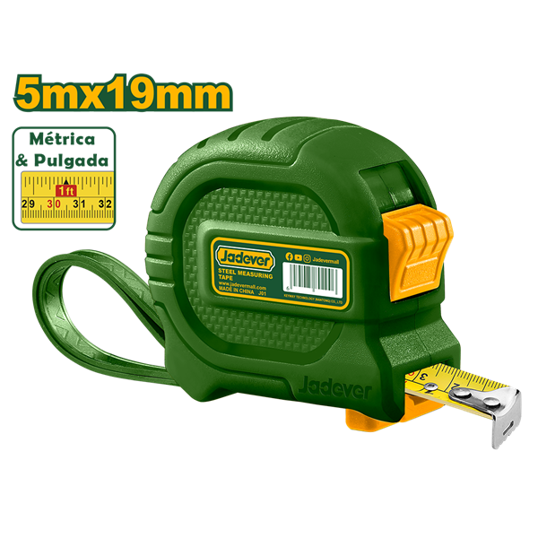 Cinta Métrica 19mm 5mts, Un Botón Con Métrica Y Pulgada