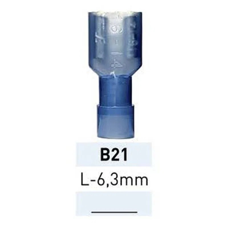 Terminal Preaislado Hembra L-6.3mm Azul B21