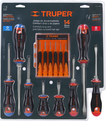 Juego De 8 Destornilladores Con Mango Comfort Grip + 6 Para Joyero