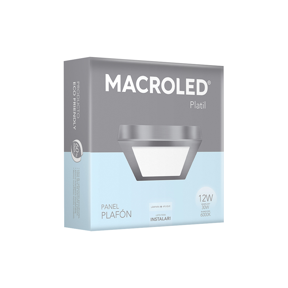 Plafon De Led Cuadrado Plateado 12w Para Aplicar Luz Dia